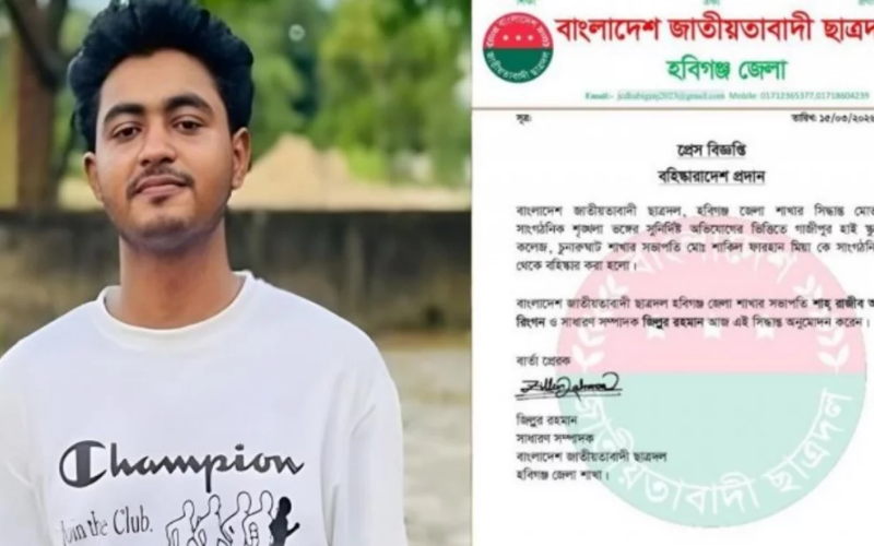 রোববার (১৫ মার্চ) রাতে জেলা ছাত্রদলের সভাপতি শাহ রাজীব আহমেদ ও সাধারণ সম্পাদক জিল্লুর রহমান স্বাক্ষরিত বিজ্ঞপ্তিতে বলা হয়, দলীয় শৃঙ্খলাভঙ্গের অভিযোগে তাকে পদ থেকে অব্যাহতি দেওয়া হয়েছে।