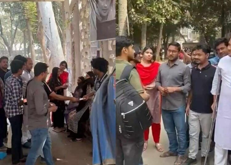 জাতীয় সংসদ নির্বাচনে ভোটাধিকার প্রয়োগ ও তারেক রহমানকে প্রধানমন্ত্রী করায় ঢাবিতে শিক্ষার্থীদের ধন্যবাদ জ্ঞাপন কার্ড” বিতরণ করলেন ছাত্রদল নেতা হামিম।