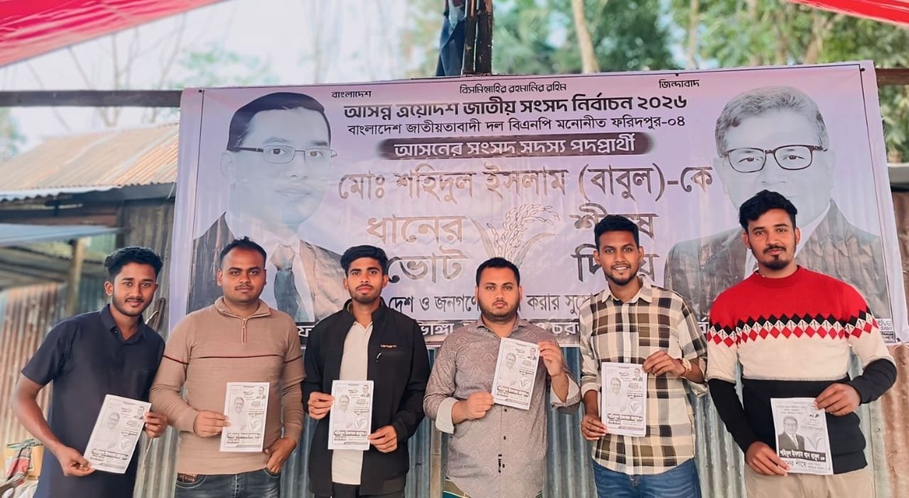 ফরিদপুর-৪ আসনের ধানের শীষের প্রার্থী শহিদুল ইসলাম বাবুলের পক্ষে নির্বাচনী প্রচারণা চালিয়েছে ছাত্রদল।
