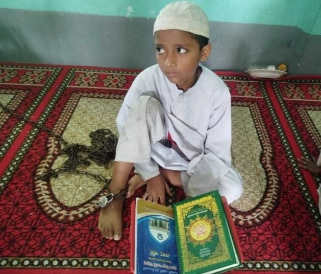 মঙ্গলবার (২৮ অক্টোবর) সন্ধায় ঘটনাটি ঘটে। স্থানীয় সূত্রে জানা যায়, নাজেরা শাখার আবাসিক ছাত্র ওসমান দুই দফা মাদ্রাসা থেকে পালিয়ে বাড়ি চলে যাওয়ায় শিক্ষকরা শাস্তি হিসেবে তার পায়ে তালাবদ্ধ শিকল বেঁধে পাঠদান চালিয়ে আসছিলেন। এতে শিশুটির পায়ে ব্যথা ও জখমের সৃষ্টি হয়।