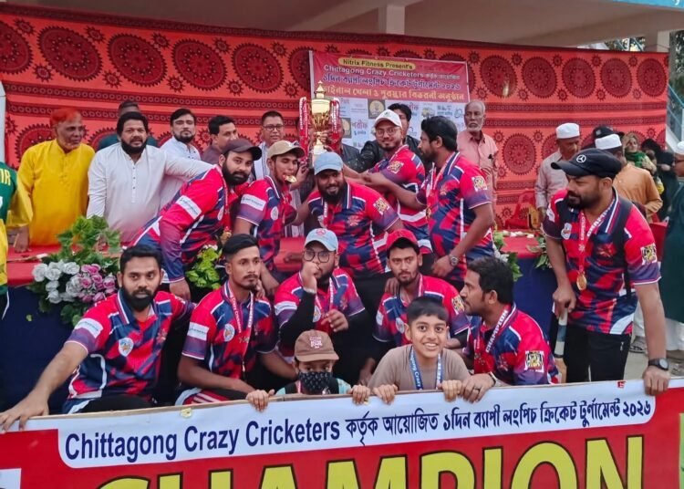 গতকাল শনিবার, ৩১ জানুয়ারি বিকাল ৩ টায় চট্টগ্রাম নগরীর পলোগ্রাউন্ড স্টেডিয়াম মাঠে চিটাগাং ক্রেজি ক্রিকেটারস এর উদ্যোগে দিনব্যাপী লং পিচ ক্রিকেট টুর্নামেন্ট ২০২৬ অনুষ্ঠিত হয়। ম্যাচে মরহুম আবদুল মোতালেব স্মৃতি সংসদ চ্যাম্পিয়ন হওয়ার গৌরব অর্জন করেন। রার্নাস আপ হয়েছেন শাহ মোহছেন আউলিয়া স্মৃতি সংসদ এবং ৩য স্থান হযেছেন মরহুম বেগম খালেদা জিয়া স্মৃতি সংসদ।