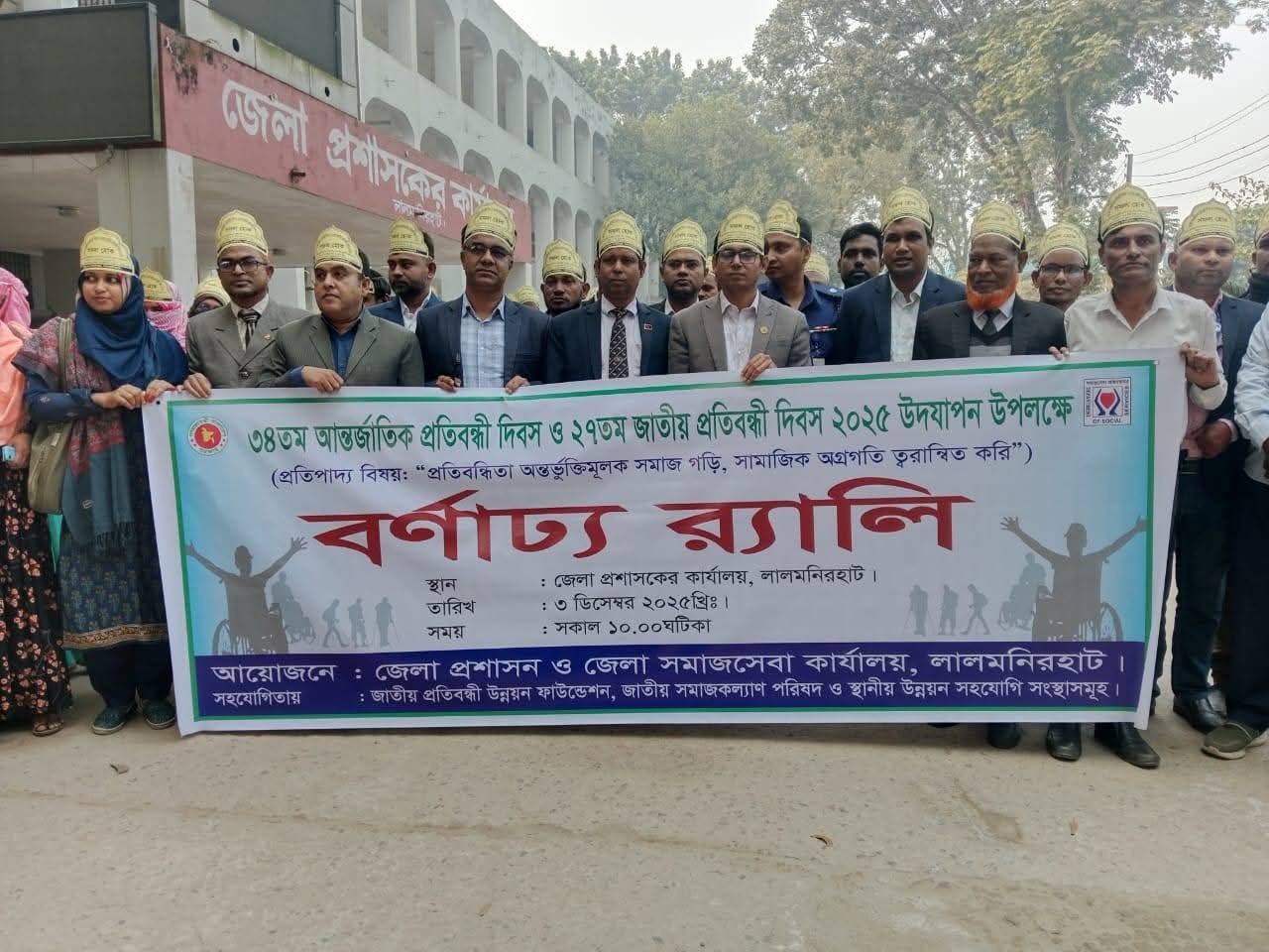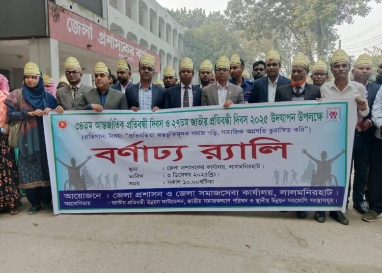 লালমনিরহাটে “প্রতিবন্ধিতা অন্তর্ভুক্তিমূলক সমাজ গড়ি, সামাজিক অগ্রগতি ত্বরান্বিত করি” প্রতিপাদ্য বিষয়কে সামনে রেখে ৩৪তম আন্তর্জাতিক প্রতিবন্ধী দিবস ও ২৭তম জাতীয় প্রতিবন্ধী দিবস ২০২৫ উদযাপন উপলক্ষে বর্ণাঢ্য র‍্যালি ও আলোচনা সভা অনুষ্ঠিত হয়েছে।
