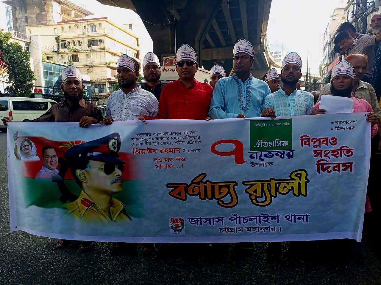 জাসাস উদ্যাগের ঐতিহাসিক ৭ই নভেম্বর ‘জাতীয় বিপ্লব ও সংহতি দিবস’ উপলক্ষে আজ চট্টগ্রাম মহানগর জাসাসের পাঁচলাইশ থানার উদ্যোগে একটি বর্ণাঢ্য র্যালি অনুষ্ঠিত হয়।