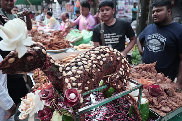 বাজার ঘুরে দেখা যায়, কোয়েল পাখির রোস্ট বিক্রি হচ্ছে ৮০–৯০ টাকায়, চিকেন কাঠি ৫০–৬০ টাকা, মুরগির রোস্ট প্রতি পিচ ৩২০–৩৫০ টাকা। নানের মধ্যে দুধ নান ৬০ টাকা, স্পেশাল বাদাম নান ৮০ টাকা। ভারী আইটেমের মধ্যে খাসির লেগ ৮০০ টাকা, গরুর সুতি কাবাব ১,২০০ টাকা, খাসির সুতি কাবাব ১,৬০০ টাকায় বিক্রি হচ্ছে।