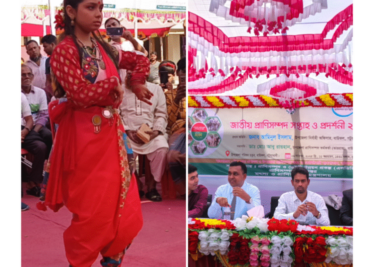 আজ বুধবার দুপুর সাড়ে ১২টার দিকে উপজেলা প্রাণিসম্পদ অধিদপ্তর আয়োজিত “প্রাণিসম্পদ সপ্তাহ ও প্রদর্শনী–২০২৫” উদ্বোধন অনুষ্ঠানে একজন শিল্পীর গাওয়া ওই রাজনৈতিক গানটির সঙ্গে নৃত্য পরিবেশন করেন সাদিয়া রহমান রিভি নামের এক শিক্ষার্থী। গানের একাংশে শেখ হাসিনাকে ‘বঙ্গকন্যা’ হিসেবে উল্লেখ করা হয়।