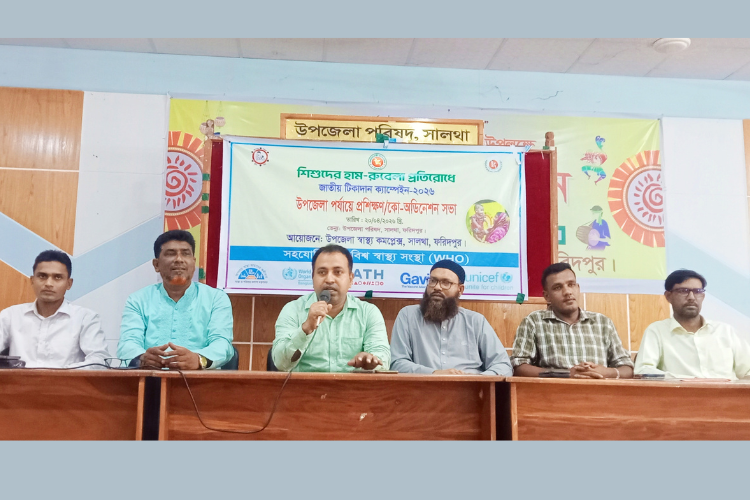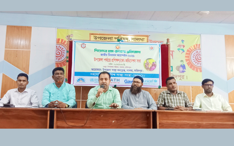 ফরিদপুরের সালথা উপজেলায় শিশুদের হাম-রুবেলা প্রতিরোধে জাতীয় টিকাদান ক্যাম্পেইন ২০২৬ উপলক্ষে প্রশিক্ষণ ও কো-অর্ডিনেশন সভা অনুষ্ঠিত হয়েছে।