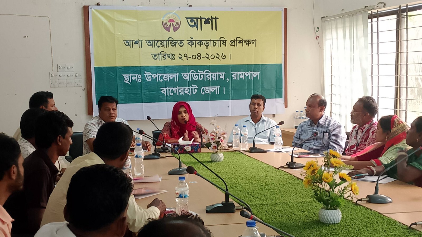 আশা এনজিও, আশা রামপাল শাখার উদ্যোগে অনুষ্ঠিত এই প্রশিক্ষণে রামপাল ও মোংলা উপজেলার ৩০ জন কাঁকড়া চাষীরা অংশগ্রহণ করেন।