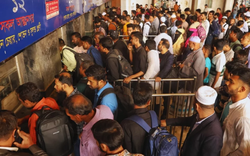 কমলাপুর স্টেশনে ঘরমুখো মানুষের উপচেপড়া ভিড়