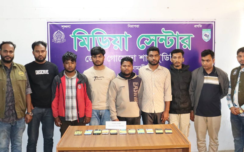 গ্রেপ্তারকৃতরা হলেন- কিশোরগঞ্জ উপজেলার বাসিন্দা মো. আদর আলী (২৪), মো. মনিরুজ্জামান সজীব (২৫), জলঢাকা উপজেলার বাসিন্দা শাহ মোহাম্মদ বুলেট (২৫), মো. রাকিবুল হাসান লাবিব (১৯), মো. সিরাজ উদ্দিন (২৩), নীলফামারী সদর উপজেলার বাসিন্দা মো. হাসান আল ফিরোজ ছোটন (২৪) এবং মো. আহসান হাবিব হাসান (২৪)।