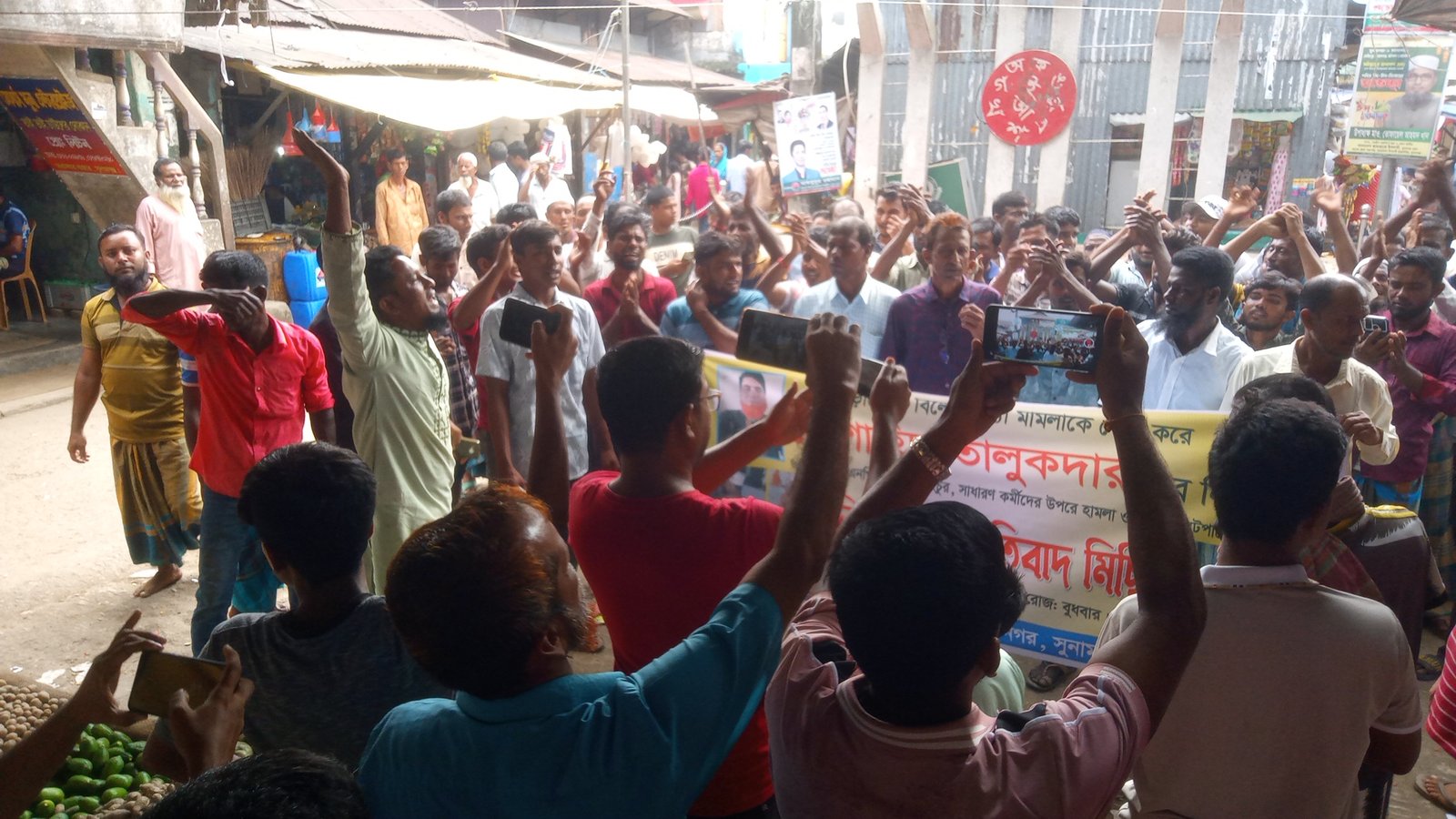 উপরোক্ত বিষয়ের জেরে বিক্ষোভ কারীরা ব্যানার,স্লোগান ও বক্তব্যে তুলে ধরেন মধ্যনগর উপজেলা বিএনপি’র যুগ্ম আহ্বায়ক মোসাহিদ তালুকদারের নির্দেশে তার অনুসারীগণ গতকাল মধ্যনগর টুকের বাজারস্থ বিএনপির অফিস ভাংচুর, হামলা ও দোকানলুপাটের ঘটনা ঘটিয়েছে।উন্মুক্ত বিলাংশের দাবীকারীর পক্ষে বিক্ষোভ ও প্রতিবাদ মিছিলের মাধ্যমে এহেন কর্মকান্ডের তীব্র নিন্দা জানিয়ে মোঃমোসাহিদ তালুকদারের অপসারণ চেয়েছেন বিক্ষুদ্ধ জনতা।বিক্ষোভ ও প্রতিবাদ মিছিলে বক্তব্য রাখেন ৬নং ওয়ার্ড বিএনপির সভাপতি মোঃ এমদাদুল হক,মোঃইদ্রিছ আলী,পরেশ সরকার,আব্দুল মজিদ প্রমুখ।