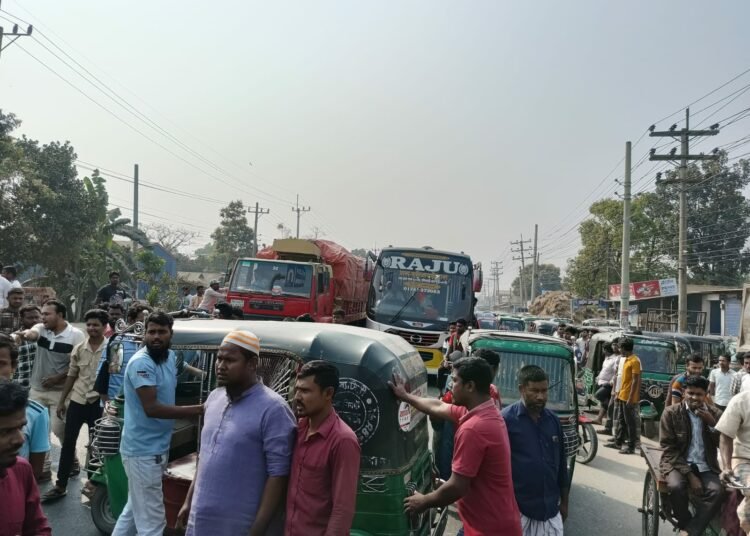 চাঁদা বন্ধের দাবীতে ঢাকা-ময়মনসিংহ মহাসড়ক অবরোধ