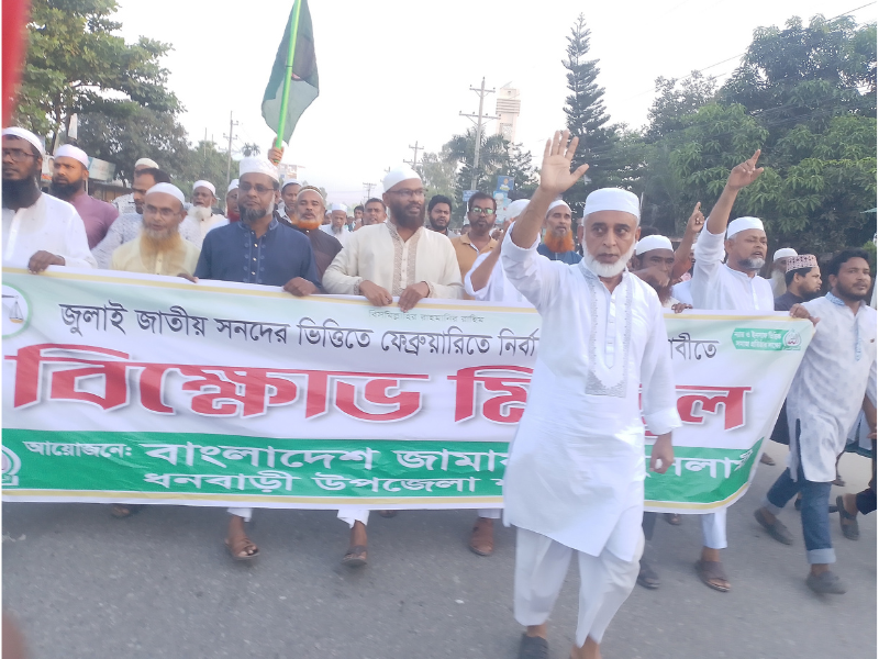 পিআর পদ্ধতিতে নির্বাচনসহ ৫ দফা দাবিতে কেন্দ্রীয় ঘোষিত কর্মসূচির অংশ হিসেবে বাংলাদেশ জামায়াতে ইসলামী ধনবাড়ি উপজেলা, পৌরসভা ও সাংগঠনিক উপজেলা শাখার যৌথ উদ্যোগে এক বিশাল বিক্ষোভ মিছিল অনুষ্ঠিত হয়েছে।