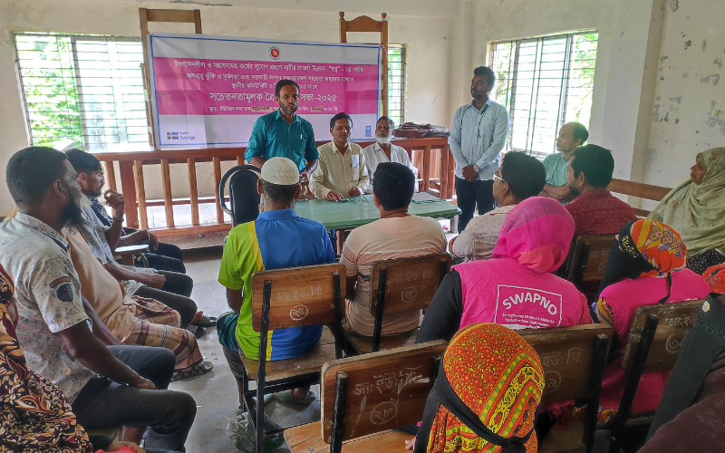 স্থানীয় কমিউনিটি ও ইউনিয়ন পরিষদের সদস্যদের অংশগ্রহণে সভায় জলবায়ু ঝুঁকি ও দুর্যোগকালীন সরকারি সম্পদ রক্ষণাবেক্ষণ, নারীর অংশগ্রহণ বৃদ্ধি এবং টেকসই উন্নয়নে স্থানীয় উদ্যোগ বিষয়ে বিস্তারিত আলোচনা হয়।