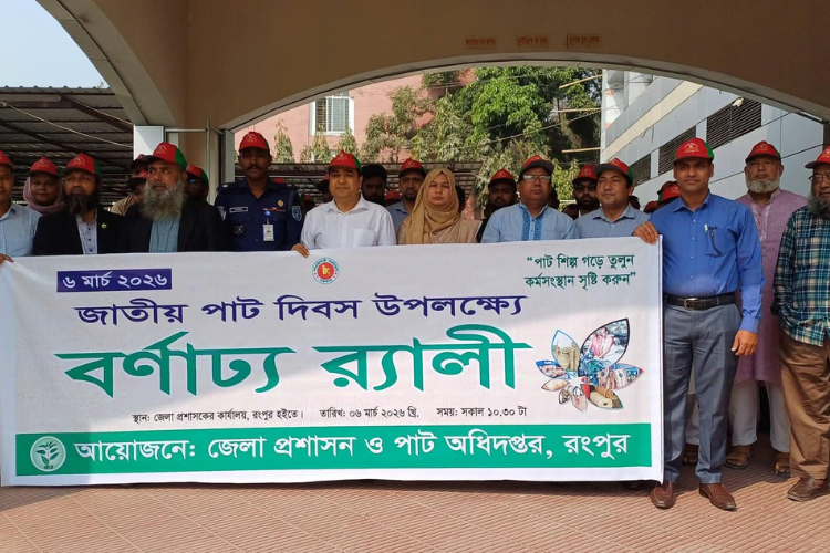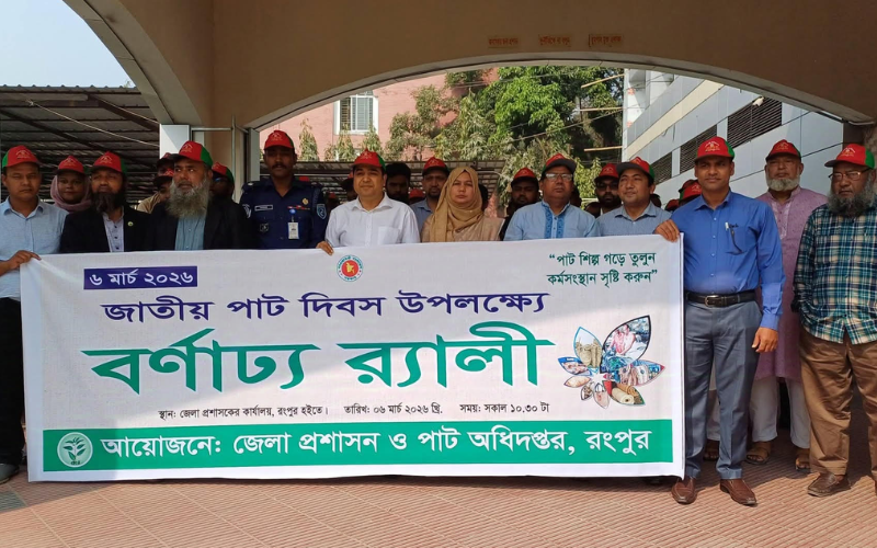 আজ ৬ মার্চ ২০২৬ ইং সকাল ১০:৩০ মিঃ জাতীয় পাট দিবস উপলক্ষে আলোচনা সভা ও বর্ণাঢ্য রেলীর আয়োজন করা হয়। প্রথমে জাতীয় পাট দিবস উপলক্ষে রংপুর জেলা প্রশাসক এর কার্যালয়ের কনফারেন্স হল রুমে আলোচনা শুরু হয়, আলোচনা শেষে বর্ণাট্য রেলী বের করা হয়।