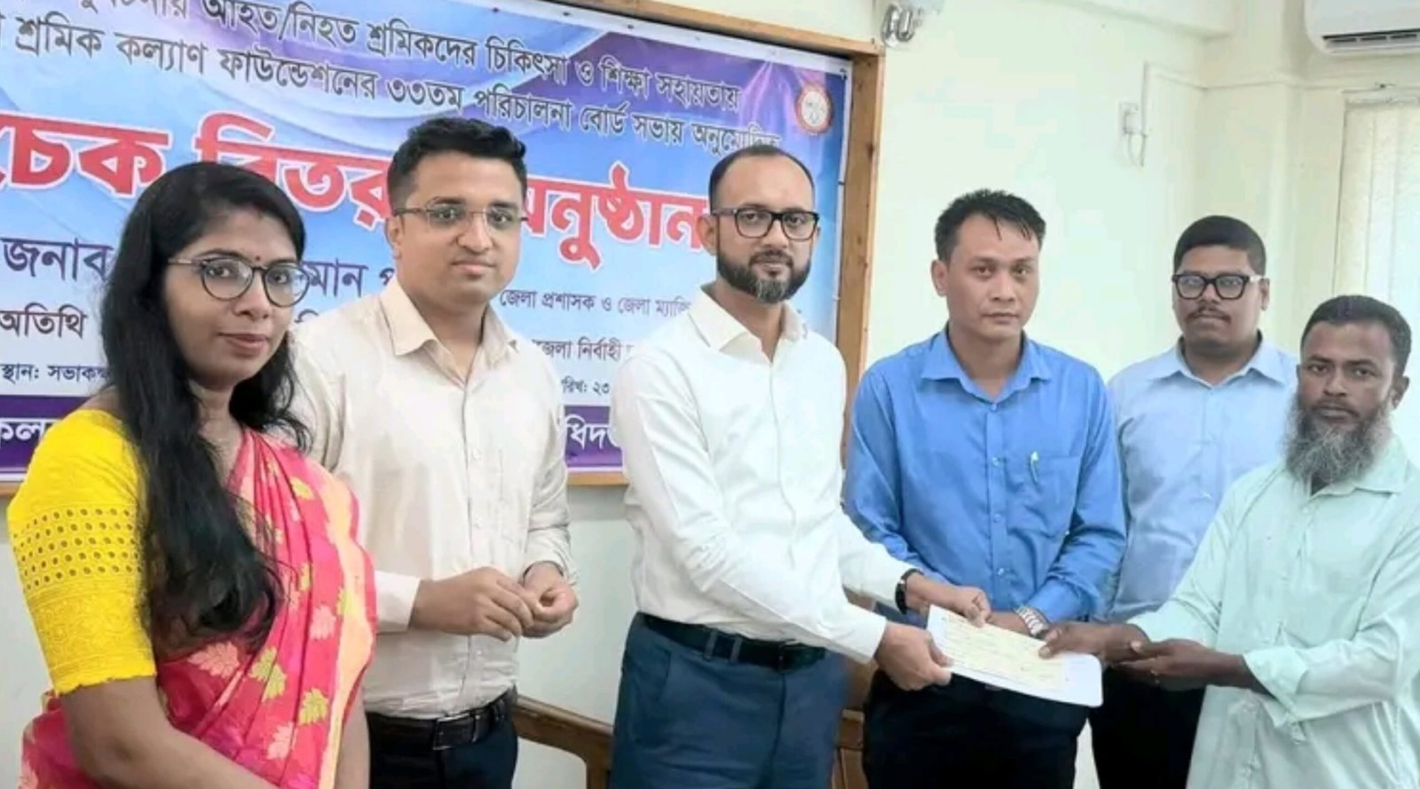 মৌলভীবাজারে অসুস্থ,দুর্ঘটনায় আহত ও নিহত শ্রমিকদের চিকিৎসা ও শিক্ষা সহায়তা প্রদানের লক্ষ্যে বাংলাদেশ শ্রমিক কল্যাণ ফাউন্ডেশনের অনুদানের চেক বিতরণ অনুষ্ঠান অনুষ্ঠিত হয়েছে।