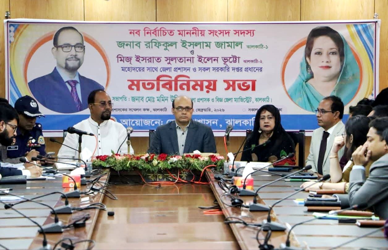 ঝালকাঠিতে নবনির্বাচিত দুই এমপিকে নিয়ে জেলা প্রশাসনের মতবিনিময় সভা
