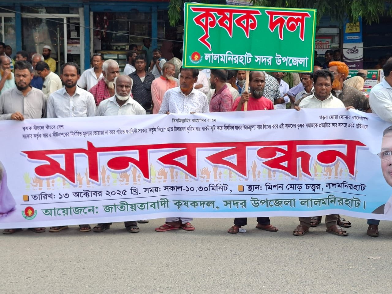 সোমবার ১৩ অক্টোবর লালমরিহাটে মিশন মোড়ে, অধিকমূল্যে সার বিক্রির প্রতিবাদে সকাল ১১:৩০ থেকে দুপুর