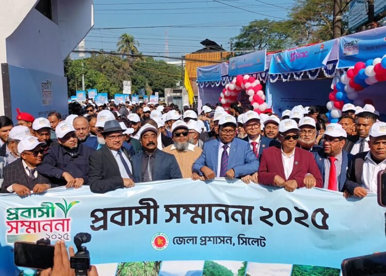 প্রবাসী রেমিট্যান্সযোদ্ধাদের অবদানের স্বীকৃতি দিতে বিশ্বের বিভিন্ন দেশে অবস্থানরত সিলেট জেলার ১০৩ প্রবাসী বাংলাদেশিকে সম্মাননা দিয়েছে জেলা প্রশাসন। রবিবার বর্ণাঢ্য অনুষ্ঠানের মাধ্যমে তাদেরকে সম্মানিত করা হয়। দিনব্যাপী অনুষ্ঠানে ছিল বর্ণাঢ্য শোভাযাত্রা, সম্মাননা প্রদান ও সেমিনার। সম্মাননা প্রদানের ৬ ক্যাটাগরির মধ্যে ছিল- সফল পেশাজীবী, ব্যবসায়ী, কমিউনিটি নেতা, নারী উদ্যোক্তা, খেলাধুলায় সাফল্য অর্জনকারী ও বাংলাদেশি পণ্য আমদানিতে ভূমিকা রাখা।