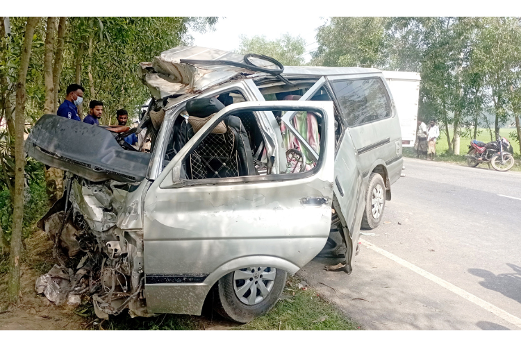শনিবার (১১ এপ্রিল) সকাল ৬টার দিকে উপজেলার দামোদারপুর শৌলা ও সোনামুখী বাজারের মাঝামাঝি এলাকায় দিনাজপুর-গোবিন্দগঞ্জ মহাসড়কে এ দুর্ঘটনা ঘটে।