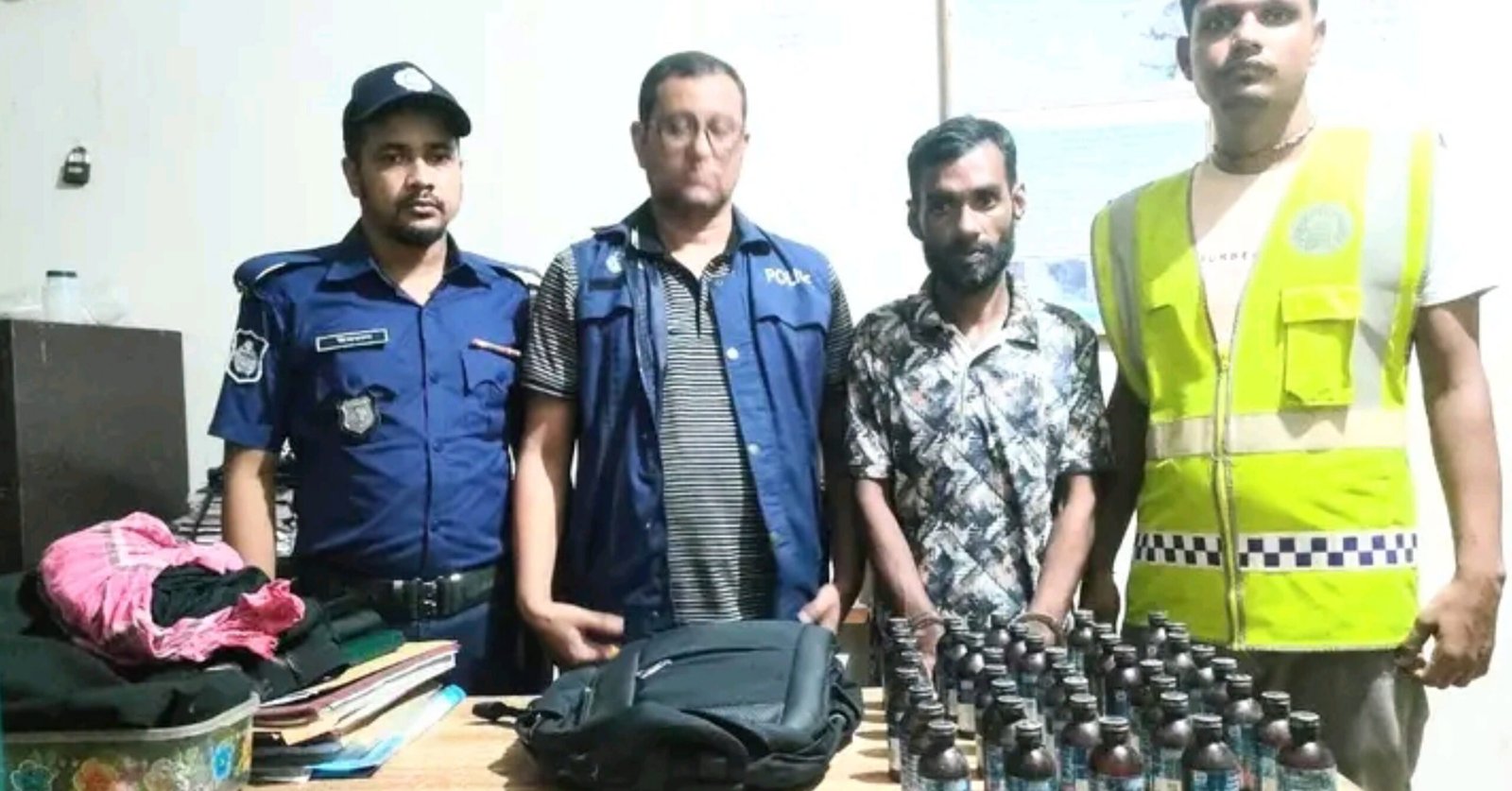 গ্রেপ্তারকৃত আসামি মো. সিরাজ মোল্যা (৩৬)। তিনি গোপালগঞ্জ জেলার গোপীনাথপুর উত্তর পাড়া গ্রামের বাসিন্দা। গোপন সংবাদের ভিত্তিতে অভিযান চালিয়ে তাকে আটক করা হয়। তার হাতে থাকা কালো ব্যাগ তল্লাশি করে ৪০ বোতল ফেন্সিডিল উদ্ধার করা হয়। বোতলগুলোতে Triprolidine Hydrochloride & Codeine Phosphate Cough Syrup লেখা ছিল।
