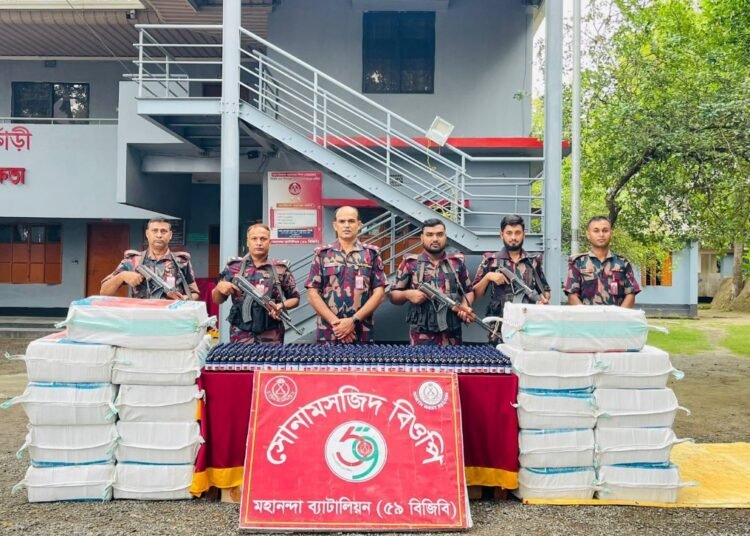 রোববার সকালে মহানন্দা ব্যাটালিয়ন ৫৯ বিজিবি সদর দপ্তর থেকে পাঠানো এক সংবাদ বিজ্ঞপ্তিতে এ তথ্য জানানো হয় ।