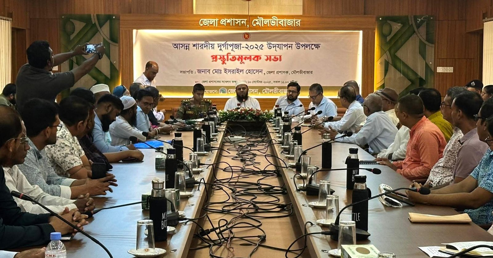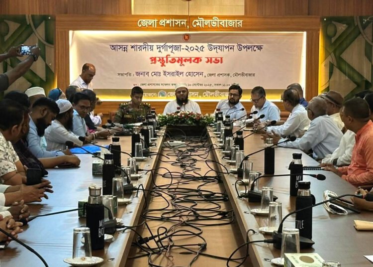 মৌলভীবাজার জেলায় উৎসবমুখর পরিবেশে শারদীয় দুর্গাপূজা উদযাপন উপলক্ষে জেলা প্রশাসনের উদ্যোগে প্রস্তুতি সভা অনুষ্ঠিত হয়েছে। বুধবার (৯ সেপ্টেম্বর) সকালে জেলা প্রশাসকের সভাকক্ষে এ সভা অনুষ্ঠিত হয়। সভায় সভাপতিত্ব করেন জেলা প্রশাসক মোঃ ইসরাইল হোসেন, আর সঞ্চালনা করেন অতিরিক্ত জেলা ম্যাজিস্ট্রেট আহমেদ হাবিব সাজ্জাদ।