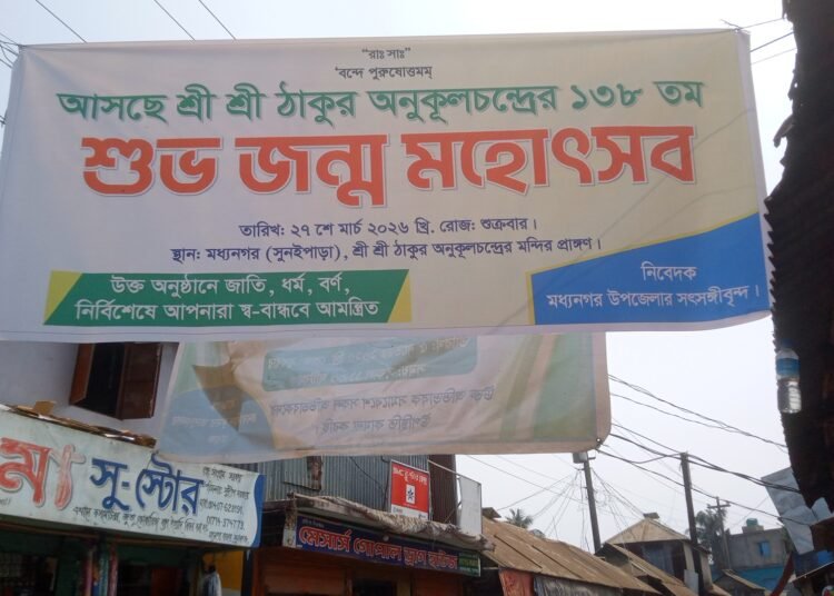 সুনামগঞ্জের মধ্যনগর উপজেলায় শ্রীশ্রী ঠাকুর অনুকূল চন্দ্রের মহোৎসব উদযাপনের ব্যানার টানালেও উল্লখিত দিনে অনুষ্ঠিত হয়নি উৎসব।