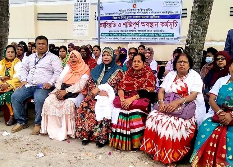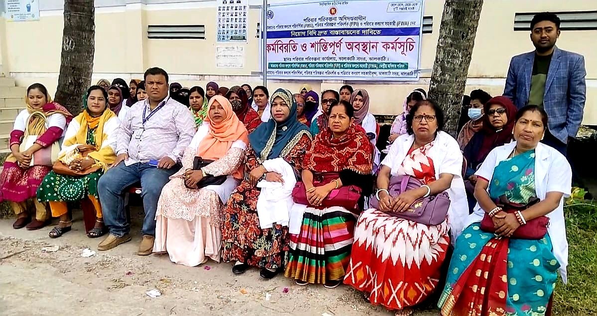 নিয়োগ বিধি দ্রুত বাস্তাবায়নের দাবিতে ঝালকাঠিতে কর্মবিরতি ও শান্তিপূর্ণ অবস্থান কর্মসূচি পালন করছে পরিবার পরিকল্পনা পরিদর্শক ও পরিবার কল্যান সহকারিরা।