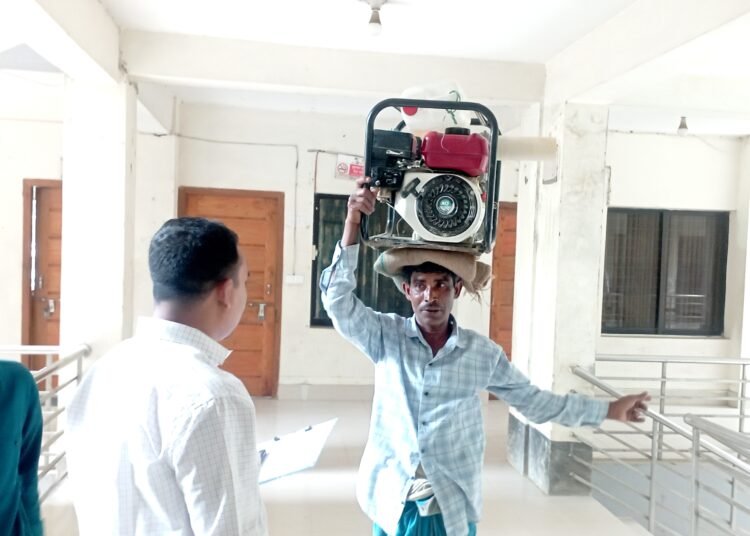 ঘোড়াঘাটে মাথায় জেনারেটর নিয়ে ফুয়েল কার্ডের জন্য হাজির কৃষক