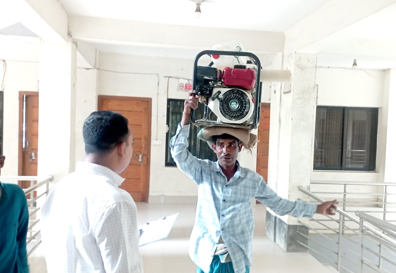 বৃহস্পতিবার (৯ এপ্রিল) দুপুরে উপজেলা পরিষদ চত্বরে ফরিদুলকে দেখা যায়, মাথার ওপর ভারি জেনারেটর। পাশ দিয়ে চলা মানুষদের চোখে হাসি আর বিস্ময়, কিন্তু ফরিদুলের মুখে একটাই চিন্তা, “জমিতে সেচ দেওয়ার তেল কোথা থেকে পাব?”