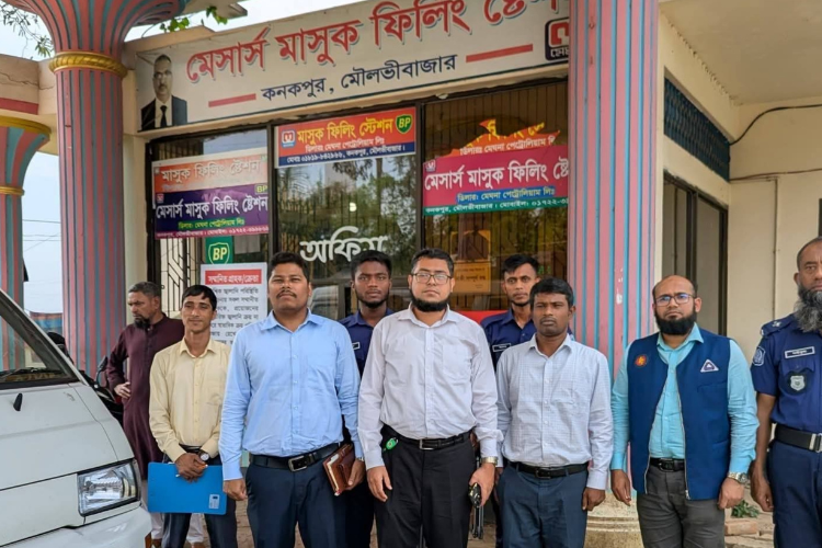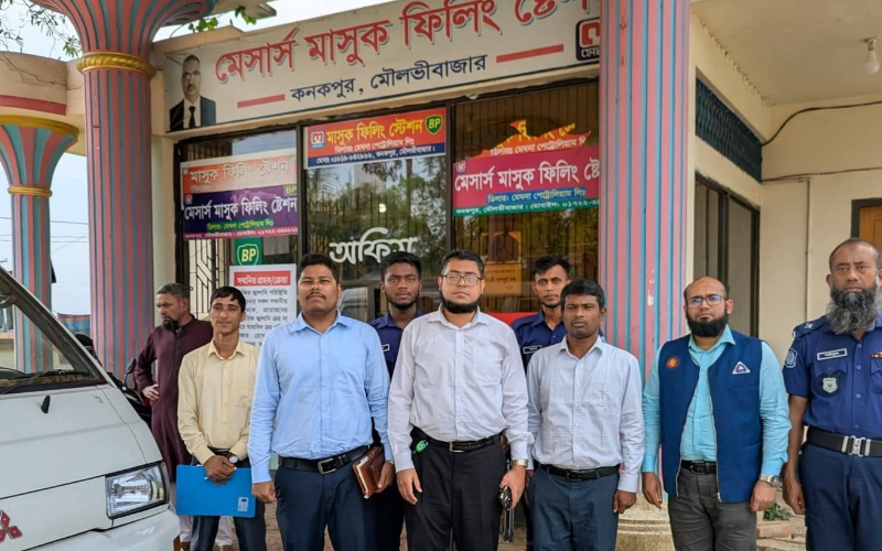 বুধবার (৮ এপ্রিল ২০২৬) দুপুর ১টা ৩০ মিনিটে মৌলভীবাজার জেলা প্রশাসনের উদ্যোগে সদর উপজেলার কনকপুর ইউনিয়নে অবস্থিত মেসার্স মাসুক ফিলিং স্টেশনে এ অভিযান পরিচালনা করা হয়। অভিযানে নেতৃত্ব দেন জেলা প্রশাসনের এক্সিকিউটিভ ম্যাজিস্ট্রেট ইব্রাহিম ইকবাল চৌধুরী।