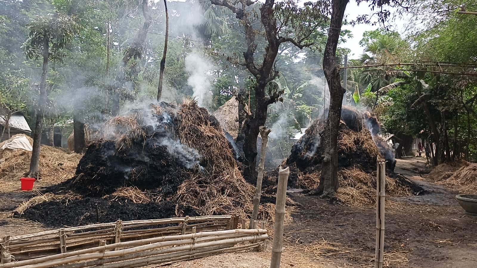 বাউফলের কালাইয়ায় গভীর রাতে আগুন, ৭ টি কুড়ের কুর পুড়ে ছাই ‎ ‎