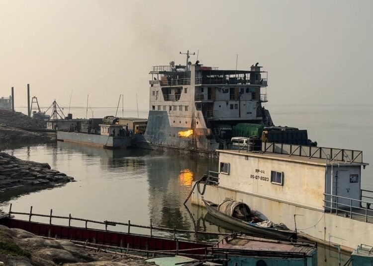 দৌলতদিয়ার ফেরিঘাটে শাহ মখদুম ফেরিতে আগুন