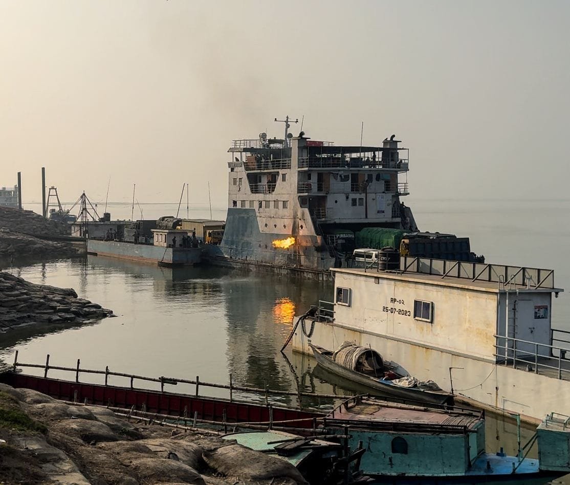 দৌলতদিয়ার ফেরিঘাটে শাহ মখদুম ফেরিতে আগুন
