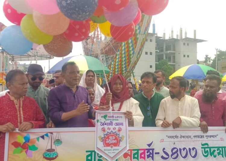 শোভাযাত্রা শেষে বৈশাখী মেলার উদ্বোধন করেন সহকারী কমিশনার (ভূমি) শামসুন নাহার শিলা।