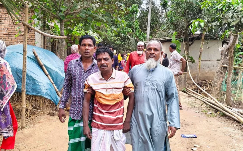 শনিবার (২৭ মার্চ) সকালে নিহতদের জানাজায় অংশ নিতে গিয়ে নিহত রাজমিস্ত্রি মো. হামিদুজ্জামান বারবার ভেঙে পড়েন। কাঁদতে কাঁদতে তিনি অসংলগ্ন কথাও বলেন, যা আশপাশের মানুষের হৃদয় ভারী করে তোলে। প্রতিবেশীদের কাঁধে ভর দিয়ে তিনি জানাজায় উপস্থিত হন।