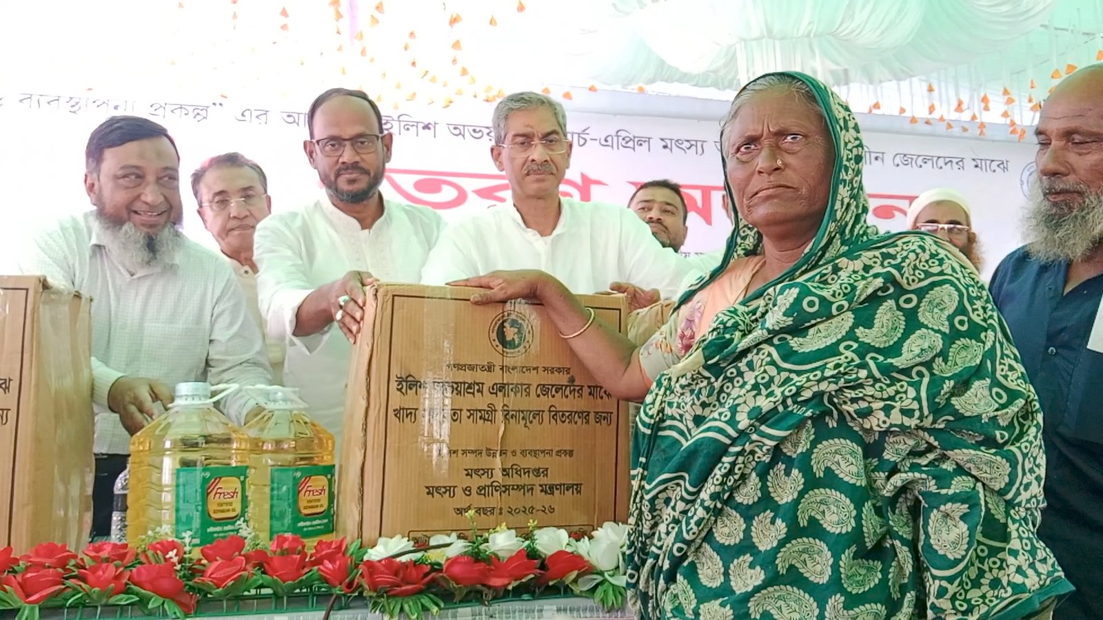 ২০২৫-২০২৬ অর্থবছরে ইলিশ সম্পদ উন্নয়ন ও ব্যবস্থাপনা প্রকল্পের আওতায় ইলিশ অভয়াশ্রম এলাকায় মার্চ-এপ্রিল দুই মাস মৎস্য আহরণ নিষিদ্ধকালীন সময়ে জেলেদের মাঝে খাদ্য সামগ্রী বিতরণ করা হয়েছে।