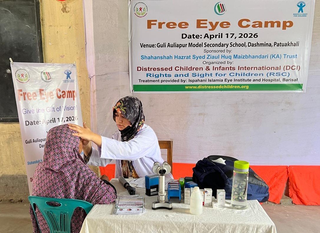 বাউফল পটুয়াখালীর দশমিনা উপজেলায় সুবিধাবঞ্চিত মানুষের জন্য আয়োজিত বিনামূল্যে চক্ষু চিকিৎসা ক্যাম্পে ৬১৮ জন রোগী সেবা পেয়েছেন। গুলি আউলিয়াপুর আদর্শ মাধ্যমিক বিদ্যালয়ে অনুষ্ঠিত এ ক্যাম্পের আয়োজন করে ডিসট্রেসড চিলড্রেন এন্ড ইনফ্যান্টস ইন্টারন্যাশনাল (ডিসিআই) ও রাইটস এন্ড সাইট ফর চিলড্রেন (আরএসসি)।
