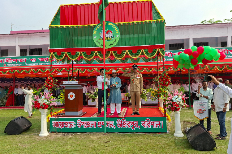 যথাযোগ্য মর্যাদা ও ভাবগাম্ভীর্যের মধ্য দিয়ে বরিশালের উজিরপুরে মহান স্বাধীনতা ও জাতীয় দিবস ২০২৬ উদযাপিত হয়েছে। দিবসটি উপলক্ষে দিনব্যাপী নানা কর্মসূচির আয়োজন করে উপজেলা প্রশাসন। প্যারেড গ্রাউন্ডে বর্ণিল আয়োজনে অনুষ্ঠিত হয় কুচকাওয়াজ, ডিসপ্লে ও বীর মুক্তিযোদ্ধা এবং তাদের পরিবারের সদস্যদের সংবর্ধনা প্রদান।