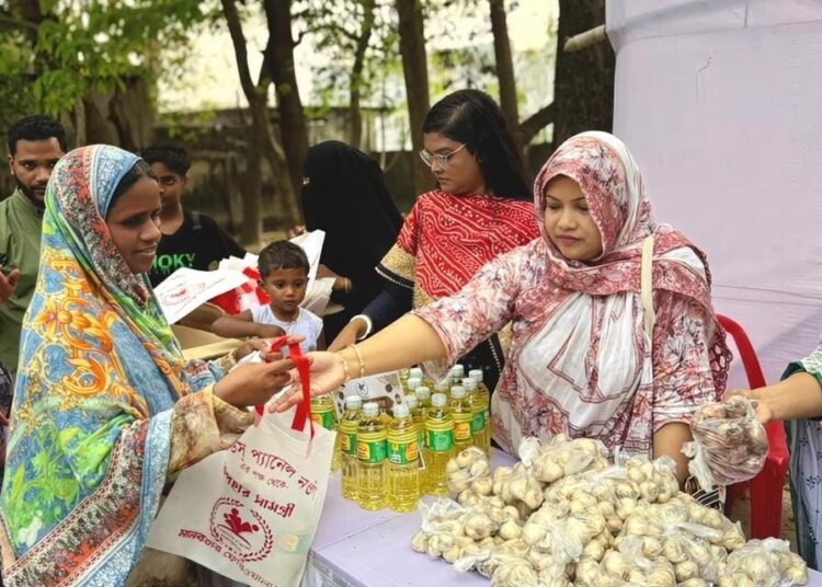 নওগাঁয় তৃণমূলের অসহায় ও নিম্নআয়ের মানুষের মাঝে ঈদের আনন্দ ছড়িয়ে দিতে ব্যতিক্রমী এক উদ্যোগ নিয়েছে স্বেচ্ছাসেবী সংগঠন ‘ফ্রেন্ডস প্যানেল’। দান বা খয়রাতের প্রচলিত ধারা থেকে বেরিয়ে এসে মানুষের আত্মসম্মান অক্ষুণ্ন রাখার লক্ষ্যে সংগঠনটি মাত্র ১০ টাকার প্রতীকী মূল্যে ২৫০টি পরিবারের হাতে তুলে দিয়েছে ঈদ উপহারের বিশেষ প্যাকেজ।