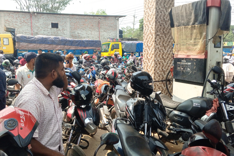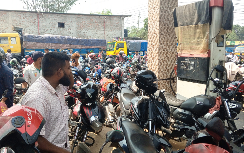 দিনাজপুরে জ্বালানি সংকট, দীর্ঘ লাইনে দাঁড়িয়ে তেল না পেয়ে হতাশ বাইকাররা