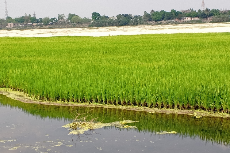 দিনাজপুরের খানসামার আত্রাই নদীর জিয়া সেতুর সংলগ্ন নদীর বুকে জেগে ওঠা বিস্তীর্ণ চরজমি পরিণত হয়েছে সবুজে মোড়া ধানের ক্ষেতে। এই আত্রাই নদীর চরে ভূমিহীন কৃষকরা বোরো ধানের আবাদ করে বুনেছেন সোনালী স্বপ্ন। তবে সেই স্বপ্নের পাশেই ভর করছে শঙ্কা—বন্যার আশঙ্কা।