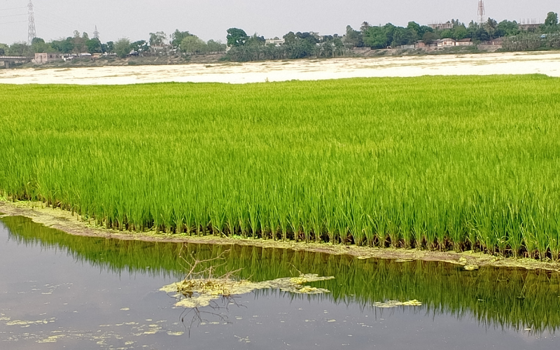 সরেজমিনে দেখা যায়, নদীর অধিকাংশ এলাকাজুড়ে দুলছে পাকা ও আধাপাকা ধান। কোথাও শীষ বের হয়েছে, আবার কোথাও শুরু হয়েছে ধান কাটা।