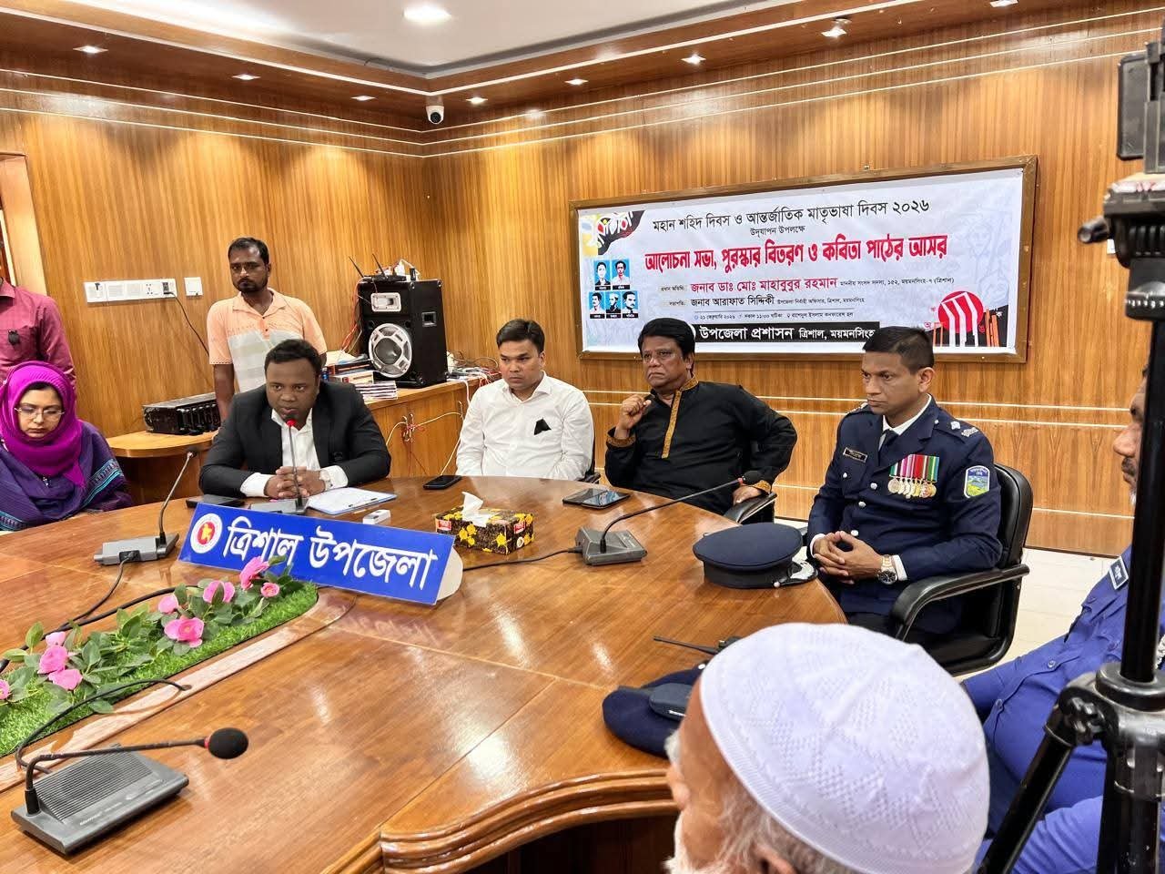 ২১ ফেরুয়ারী উপজেলা প্রশাসনের হলরুমে আলোচনা সভা ও পুরুষ্কার বিতরনী আসরে উপজেলা নিবার্হী অফিসার আরাফাত সিদ্দিকী সভাপতিত্বে প্রধান অতিথি হিসাবে উপস্থিত ছিলেন ময়মনসিংহ -৭ ত্রিশাল আসনের জাতীয় সংসদ সদস্য ডা: মাহাবুবুর রহমান লিটন।