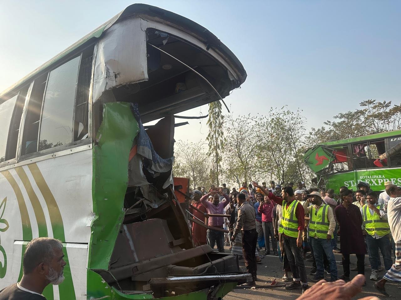 দুর্ঘটনাকবলিত দুই বাস জব্দ করা হয়েছে এবং আইনগত প্রক্রিয়া চলমান রয়েছে।
