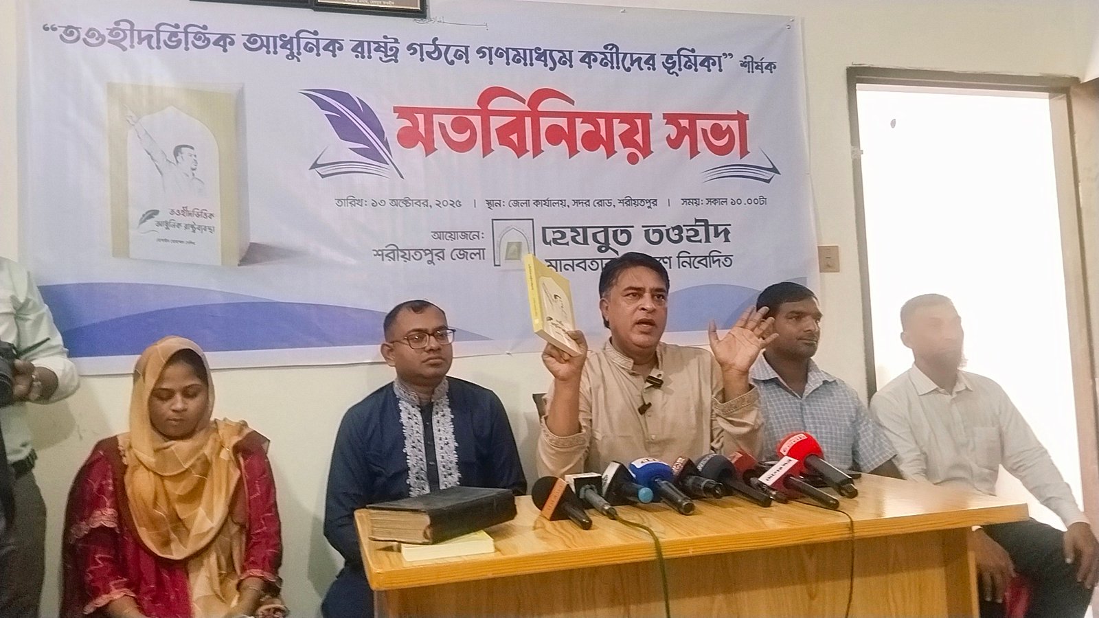 শরীয়তপুর জেলা হেযবুত তাওহীদের উদ্যোগে “তাওহীদভিত্তিক আধুনিক রাষ্ট্র গঠনে গণমাধ্যমকর্মীদের ভূমিকা শীর্ষক মতবিনিময় সভা অনুষ্ঠিত হয়েছে। সোমবার (১৩ অক্টোবর, ২০২৫) সকাল ১০টায় শরীয়তপুর জেলা হেযবুত তওহীদের কার্যালয়ে এ মতবিনিময় সভার আয়োজন করা হয়।