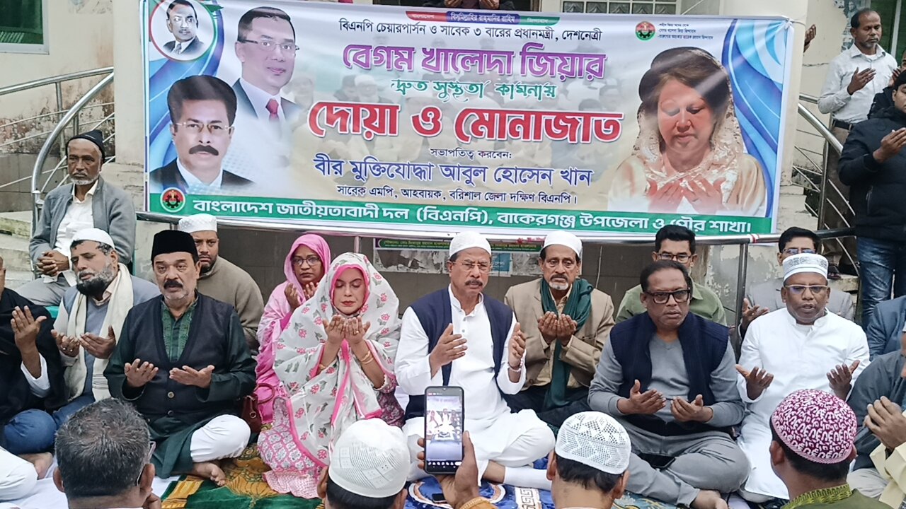 বাকেরগঞ্জে খালেদা জিয়ার সুস্থতা কামনায় পবিত্র কোরআন খতম, দোয়া ও মোনাজাত অনুষ্ঠিত