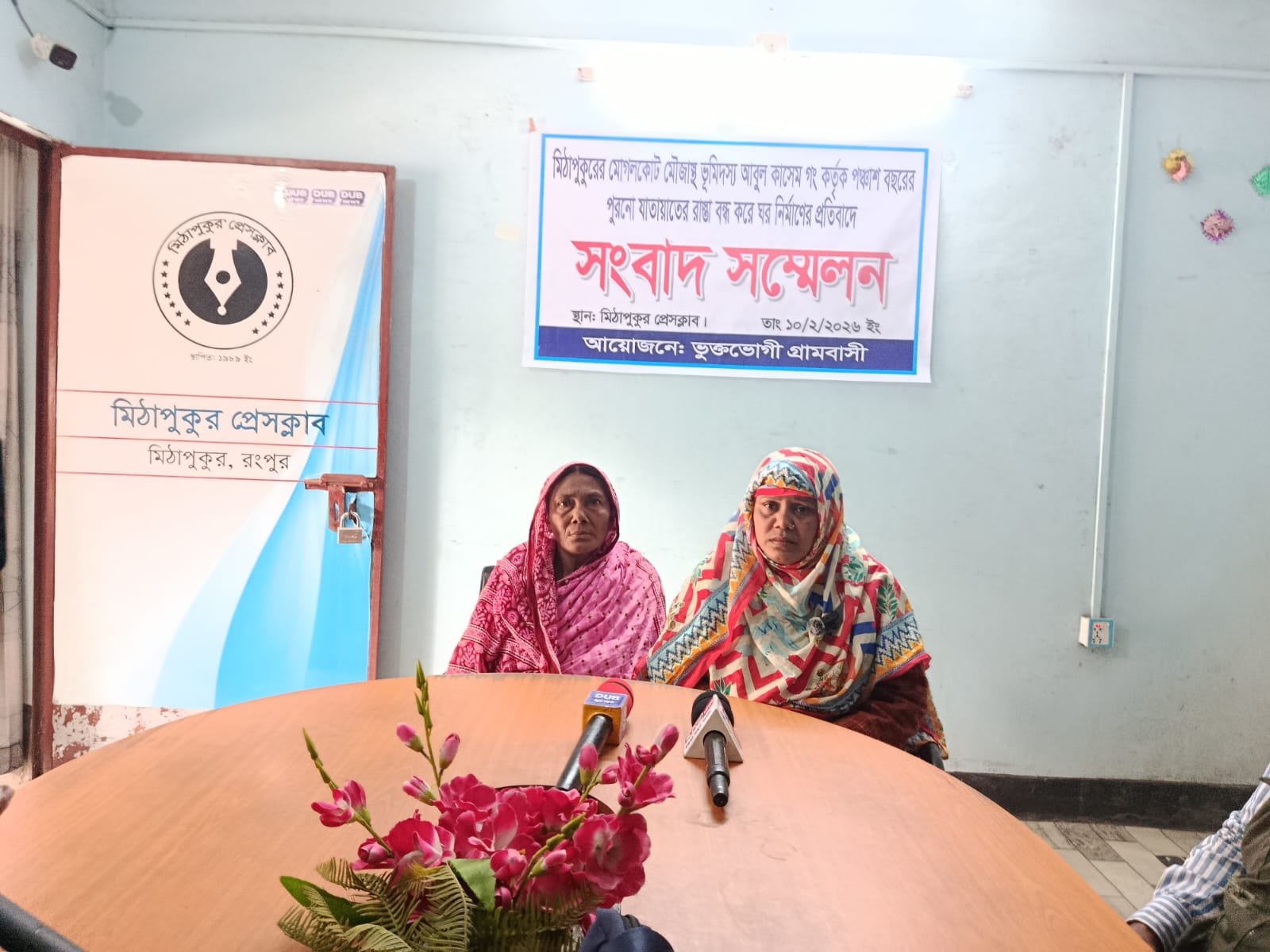 রংপুরের মিঠাপুকুর উপজেলার মোগলকোট মৌজায় প্রায় অর্ধশতাব্দীর পুরনো একটি সরকারি যাতায়াতের রাস্তা বন্ধ করে ঘর নির্মাণের অভিযোগ উঠেছে স্থানীয় প্রভাবশালী মহলের বিরুদ্ধে। এর প্রতিবাদে এবং জীবনের নিরাপত্তার দাবিতে আজ মঙ্গলবার সকালে মিঠাপুকুর প্রেসক্লাবে সংবাদ সম্মেলন করেছেন ভুক্তভোগী পরিবার।