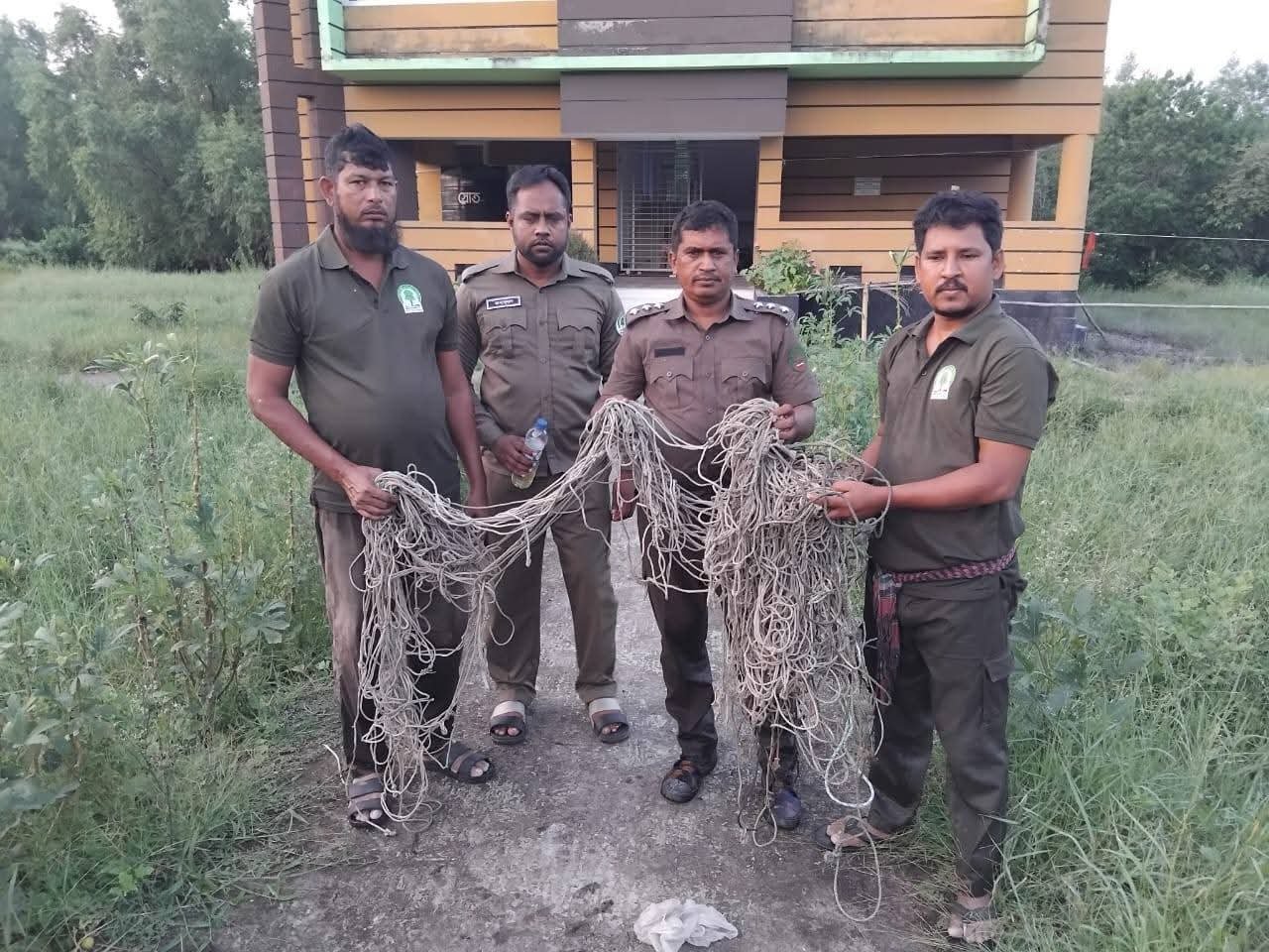 পূর্ব সুন্দরবনে অভিযান চালিয়ে বনের বালির নিচে লুকানো ১০৫ ফুট লম্বা একটি মালা ফাঁদসহ বিপুল সংখ্যক ফাঁদ জব্দ করেছে বনবিভাগ। গতকাল (১৩ অক্টোবর) সকাল ৬টার দিকে মেহেরআলী থেকে খাজুরতলা পর্যন্ত টহলকালে ফাঁদটি উদ্ধার করা হয়। চিহ্ন হিসেবে ফাঁদ স্থাপনকারীরা গাছে জুতা ঝুলিয়ে রেখেছিল।