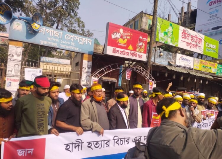 ময়মনসিংহের মুক্তাগাছায় শহীদ শরিফ ওসমান বিন হাদীর হত্যাকাণ্ডের দ্রুত বিচার এবং জড়িতদের সর্বোচ্চ শাস্তির দাবিতে বিশাল মানববন্ধন কর্মসূচি পালিত হয়েছে। গত সোমবার মুক্তাগাছা উপজেলা প্রেস ক্লাবের সামনে আয়োজিত এই কর্মসূচিতে শিক্ষার্থী, শিক্ষক, অভিভাবক ও সামাজিক সংগঠনের প্রতিনিধিসহ সর্বস্তরের মানুষ অংশ নেন।